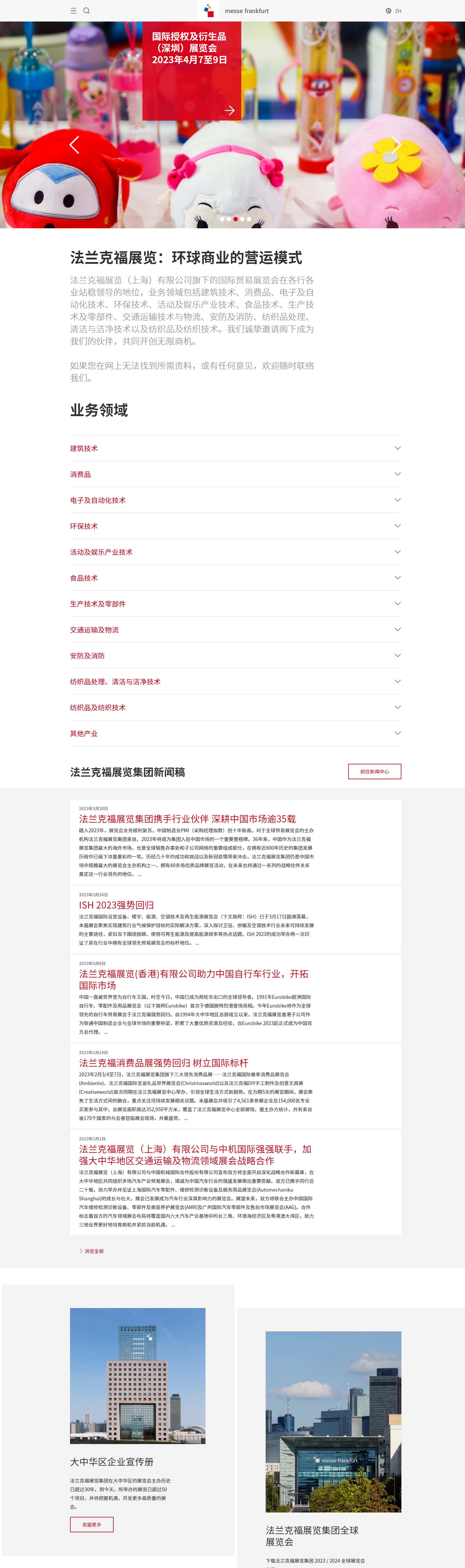 涵智网络在功能、设计和服务,结合展会行业的特点,网站风格与内容体现复合性、直观、形象和生动。从需求的角度来例如展会信息的展现,参与者的体验性。在网站关于展会服务,展会动态、受邀嘉宾、会议日程和参会方式及联系以专题页形式进行设计,充分体现法兰克福展览的专业性。