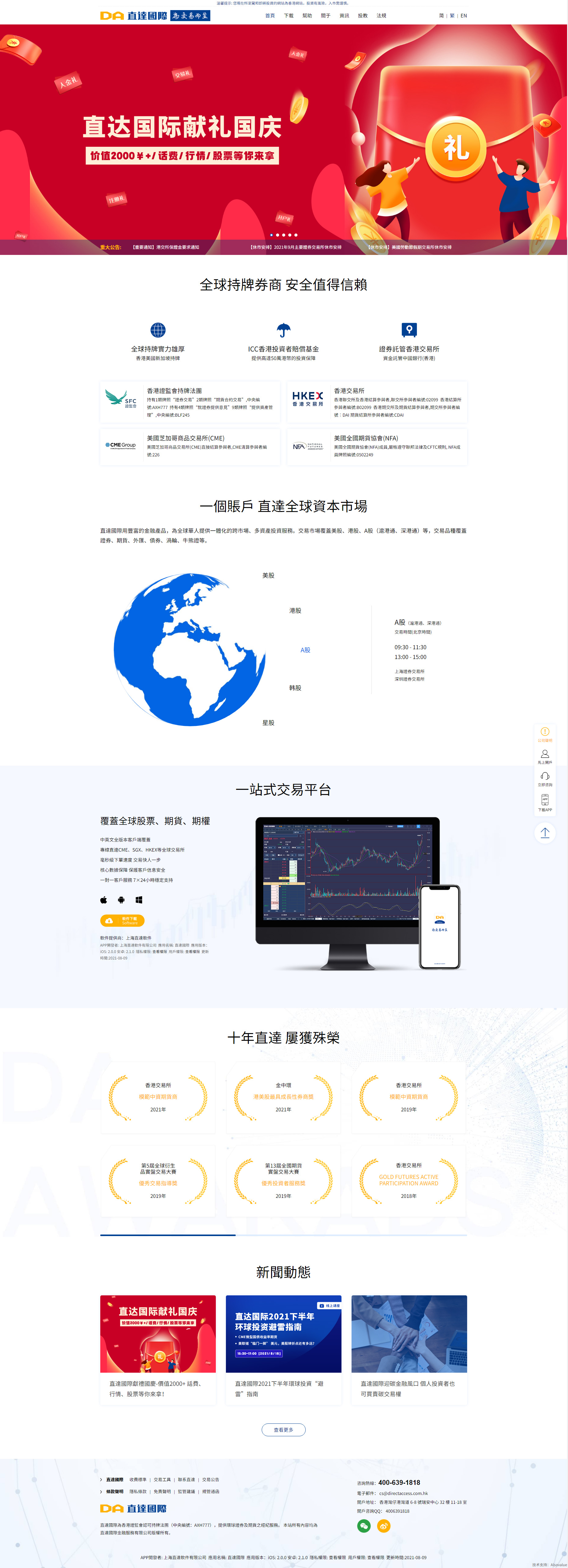 直达国际金融服务有限公司(DA International Financial Service Ltd)成立于2011年,是香港证监会认可的持牌法团,持有香港证监会颁布的1、2号牌照(编号:AXH777),为广大投资者提供证券、期货经纪业务。同时,公司通过直达国际资产管理公司获得4、9号牌照(编号:BLF245),为投资者就证券提供意见及资产管理服务。