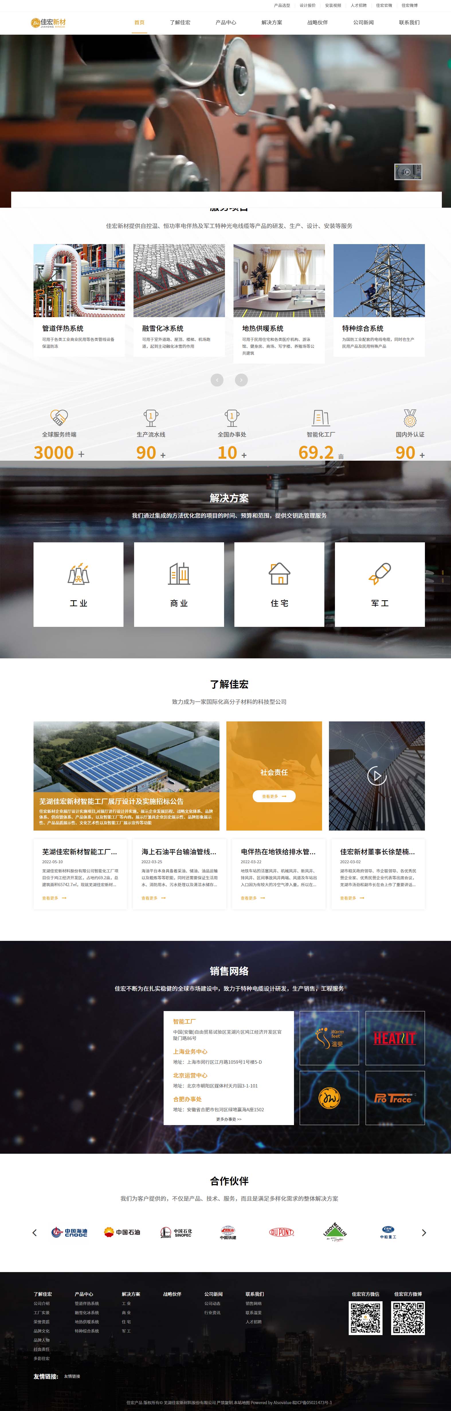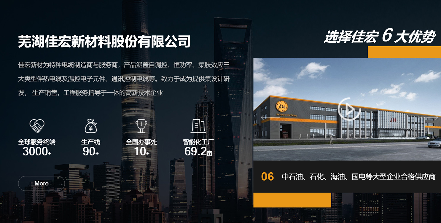 芜湖佳宏新材料有限公司为国内伴热行业规模的伴热电缆制造商与服务商,注册资金3787.75万元,企业员工数348人,产品涵盖自调控、恒功率、集肤效应三大类型伴热电缆、通讯控制电缆等。是一家集设计研发, 生产销售,工程服务指导于一体的高新技术企业。