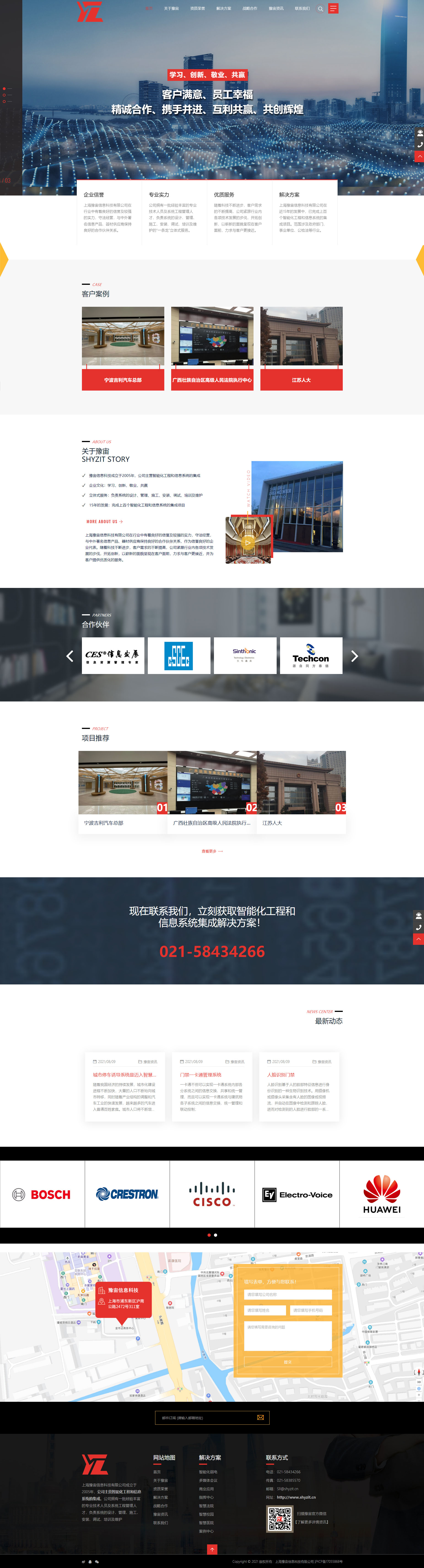 上海豫宙信息科技有限公司成立于2005年,公司主营工程和信息系统的集成。公司拥有一批经验丰富的技术人员及系统工程管理人才,负责系统的设计、管理、施工、安装、调试、培训及维护的“一条龙”立体式服务,尤其在音视频多媒体领域内具有奇特、创新的经验,提供好的系统设备和完善的售后服务,赢得了广大客户的认可与支持。