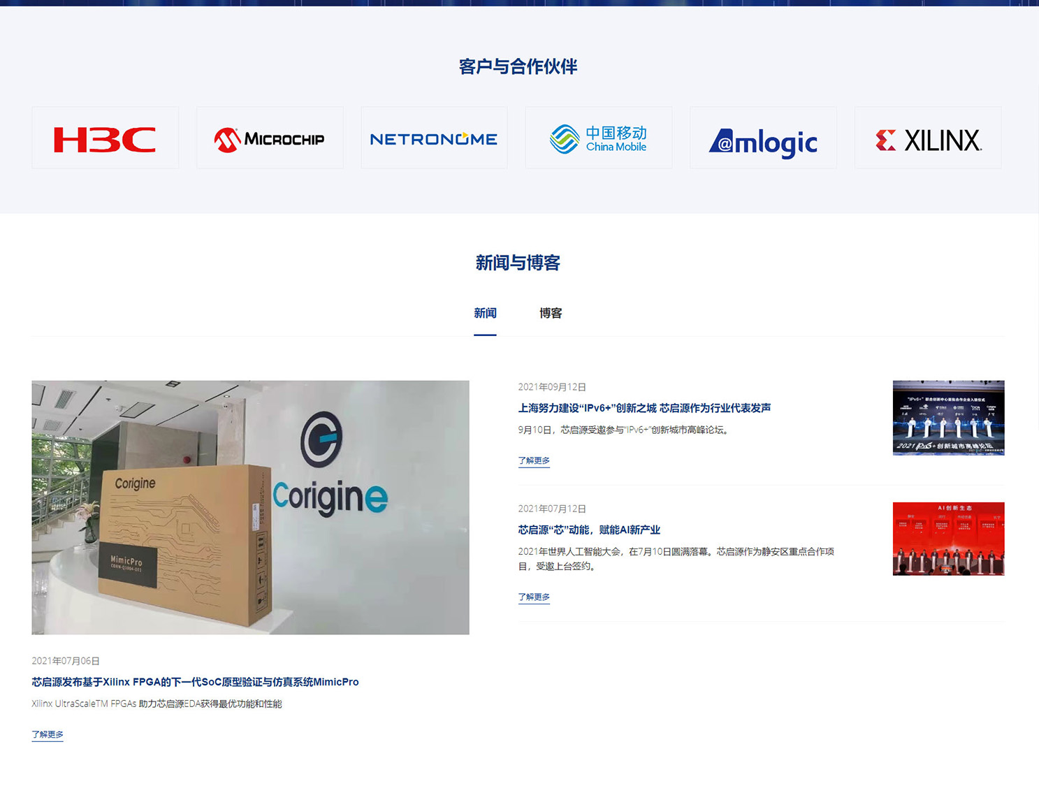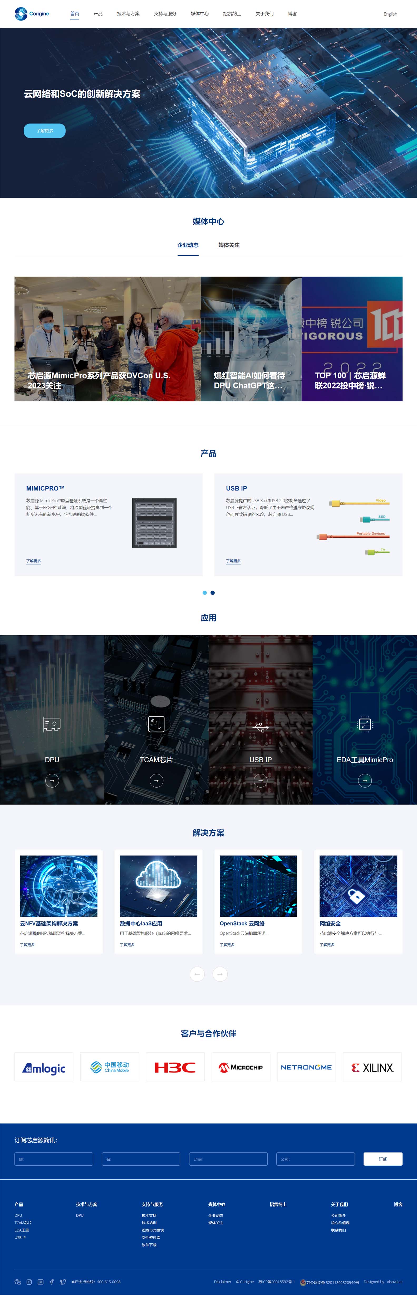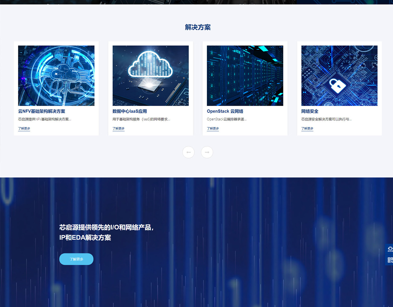 此次网站建设,涵智网站从布局按照导航栏顺序,让进入网站的客户不至于“迷路”;头图banner则言简意赅地介绍了自身品牌和新品,让用户能立刻了解自己的需求。 网站色彩以科技蓝,并且保证留白,明暗对比突显芯启源高科技感。网站建设选择通屏、长屏设计与简约扁平化的风格,体现网站的设计感,增加网站访问的友好度。