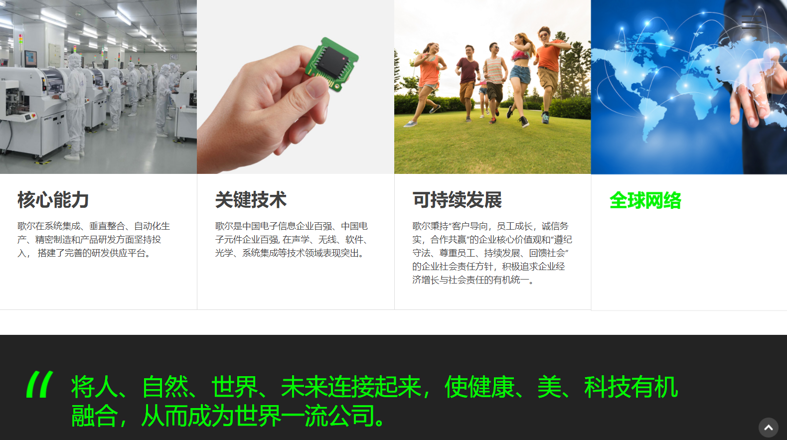 在网站栏目及布局策划,注重突出机器人与人工智能科技和可靠飞控、自稳云台技术、应用软件开发等多个应用领域。通过数据向用户强调企业的实力,为网站吸引更多的合作伙伴。此外,涵智网络用最新的H5响应式建站技术,为歌尔泰克定制高端的PC+手机+微信+Ipad端的高品质网站达到兼容所有平台,一站式管理。