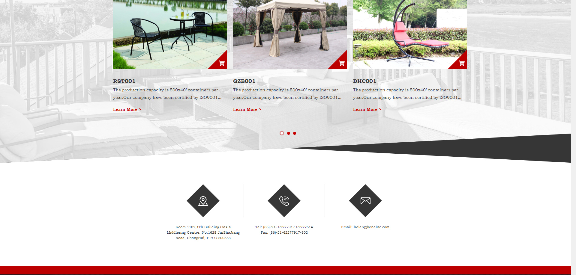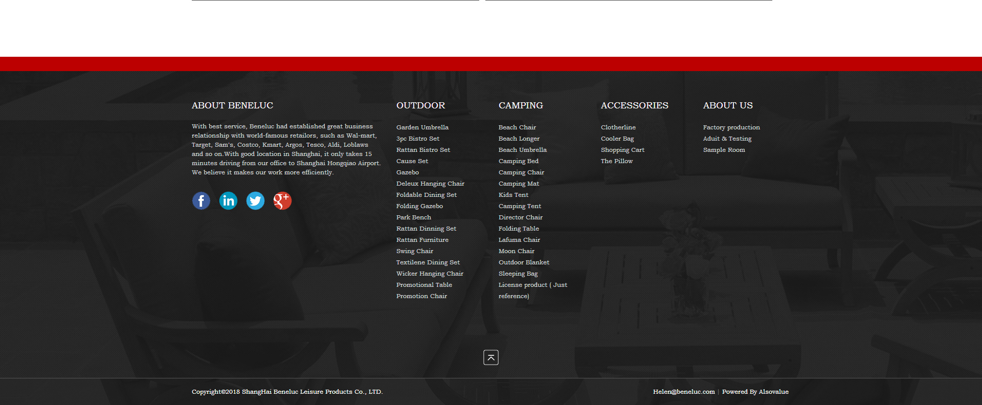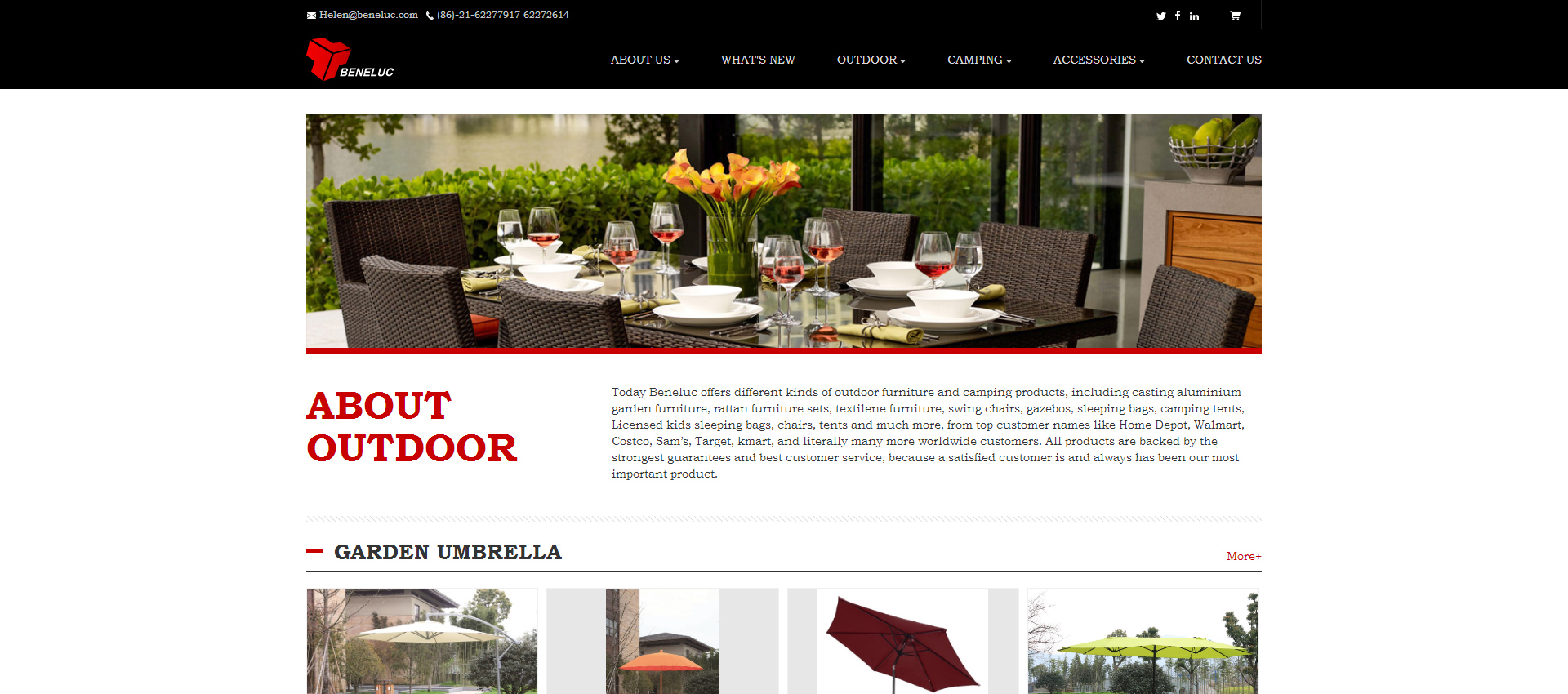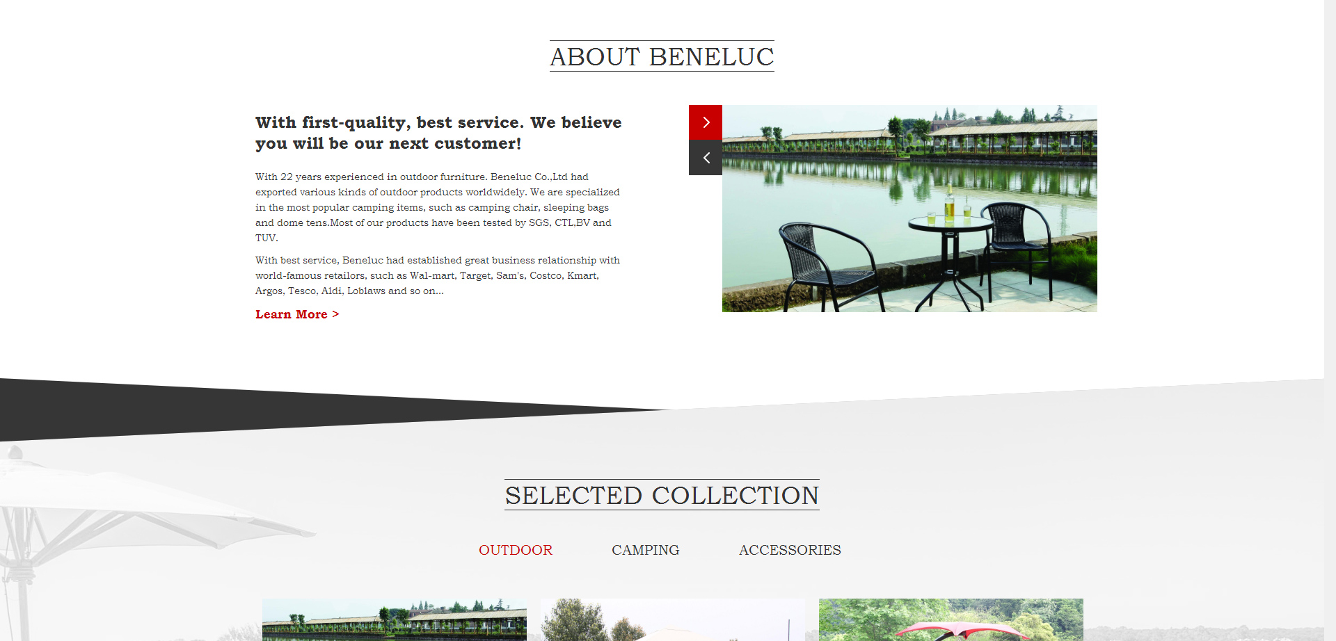 In 1994, Mr. Lucky and Lady Zhang established our own factory New Light Garden Furniture, after 10 years, with production experience and expanding business, Beneluc Co. Ltd, our trading company in ShangHai, was presented to worldwide customers with best quality and best service! “ Quality comes firstly” The concept was a spectacular success, helping Beneluc stand in such a competitive market.