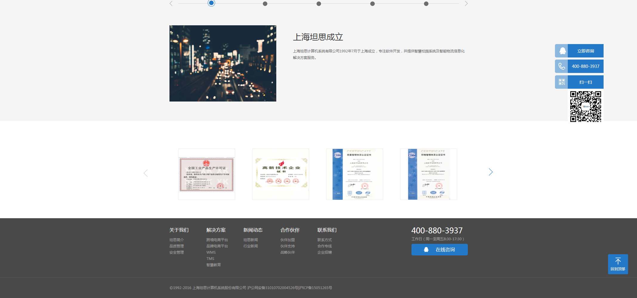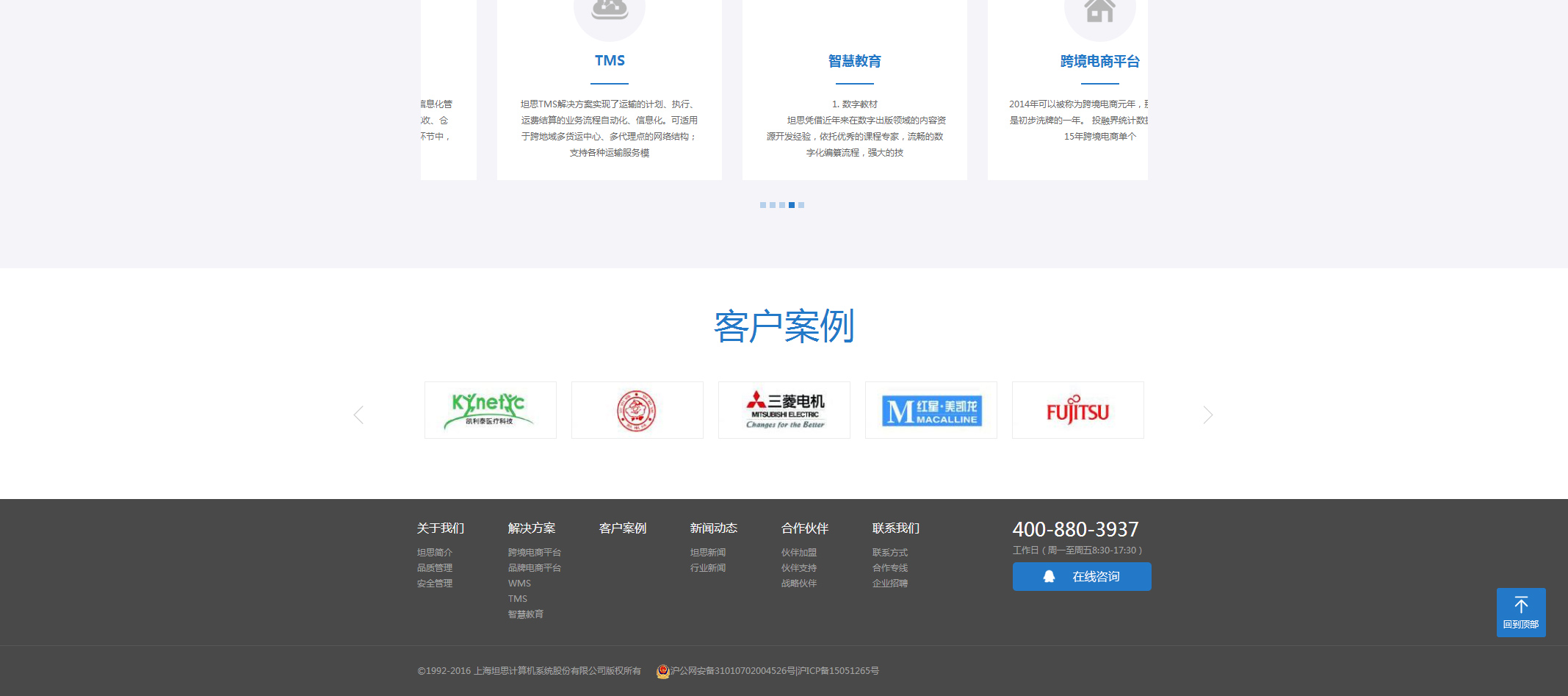 上海坦思计算机系统股份有限公司(Shanghai tes computer system Co. Ltd.)于1992年成立于上海,在上海、南通、日本等多个地区设立有独立运营中心。坦思是25年从事物流信息系统、电子商务(跨境)平台、智慧教育软件的互联网企业,持续为上千家企业服务。尤其在仓储、运输、配送,跨境电商平台构建等企业信息化解决方案方面具有丰富经验。