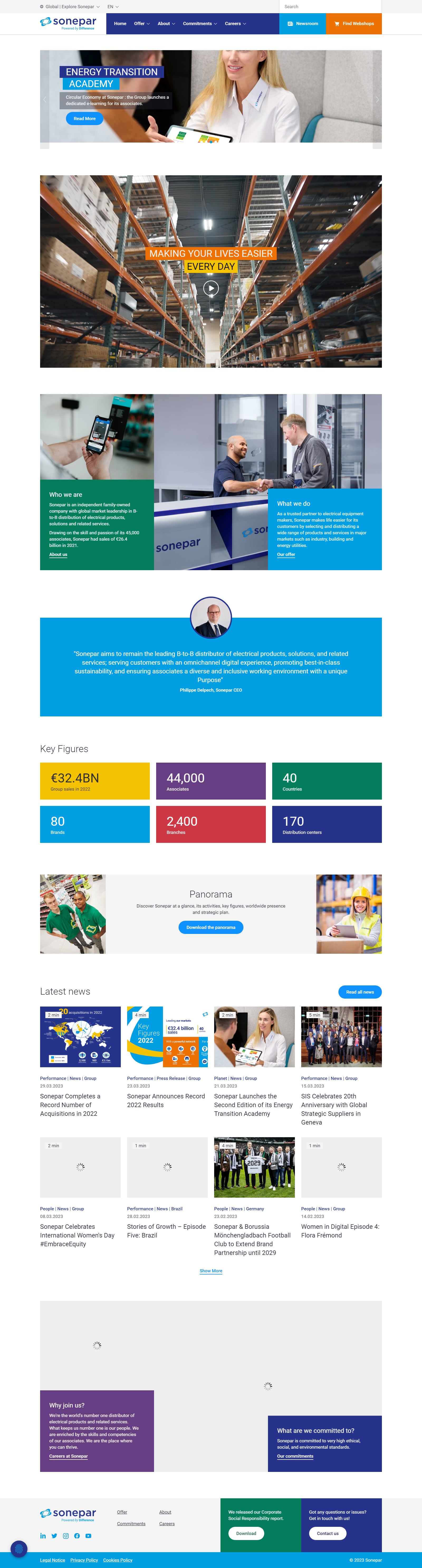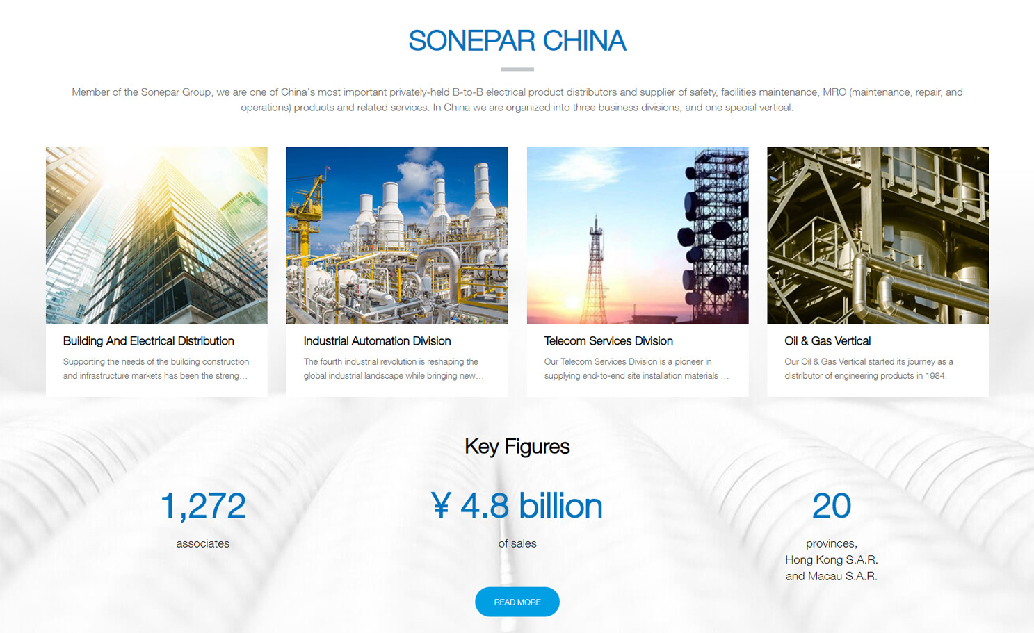 同时,我们积极适应和配合行业客户的需要,为客户的业务需求针对其电气产品及服务在网站上突出显示。索能达Sonepar是全球电气产品、电气解决方案和配套服务的B2B分销领域居行业重要地位的家族企业。